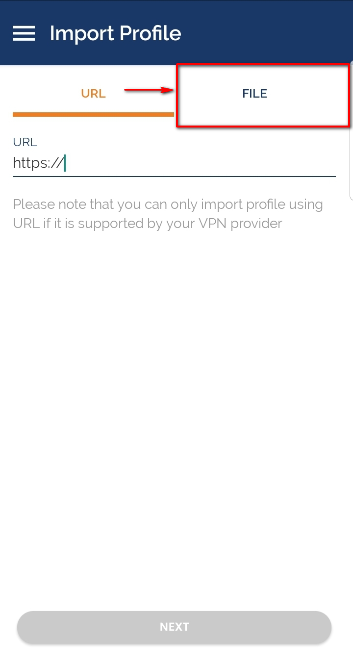 2 Seleccionar la opción FILE y buscar el archivo .ovpn que nos fue proporcionado.