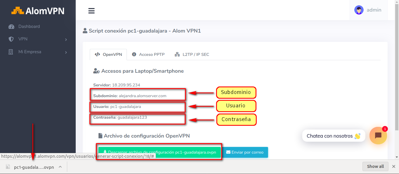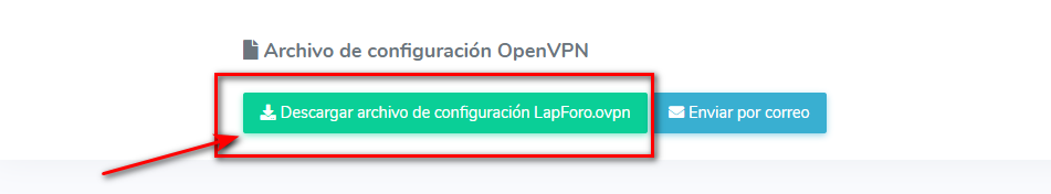Tenemos 2 opciones disponibles para obtener el archivo de configuración .ovpn, en nuestro caso usaremos descargar archivo de configuración.