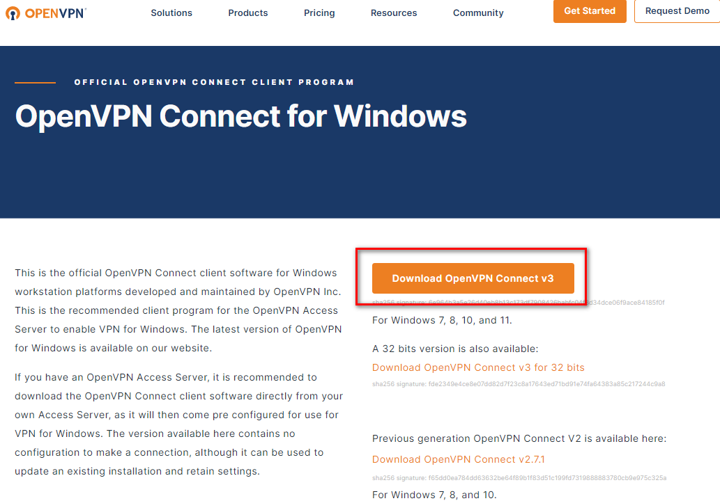 Es necesario que el cliente tenga instalado el programa OpenVPN, puede obtenerse en https://openvpn.net/community-downloads/ para su versión de Windows actualmente instalado.