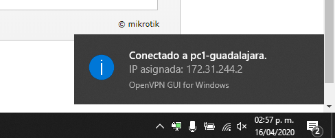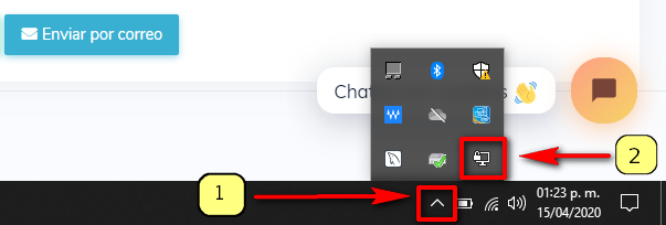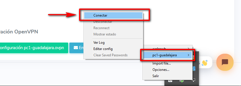 2 Una vez inicializado OpenVpn GUI nos posicionamos en la parte inferior derecha y damos click al botón que se muestra en la imagen.