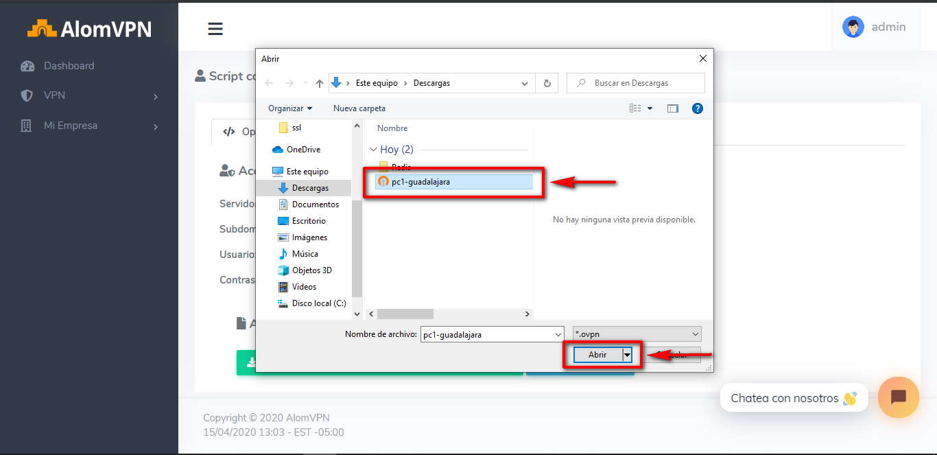 Antes de comenzar con la conguración es necesario que el cliente tenga a la mano el archivo de configuración .ovpn, para ello debemos realizar lo siguiente: