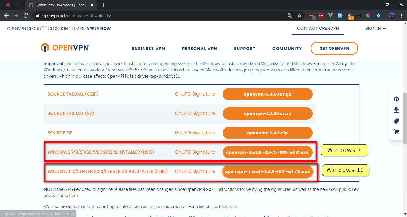 Es necesario que el cliente tenga instalado el programa OpenVPN, puede obtenerse en https://openvpn.net/community-downloads/ para su versión de Windows actualmente instalado.
