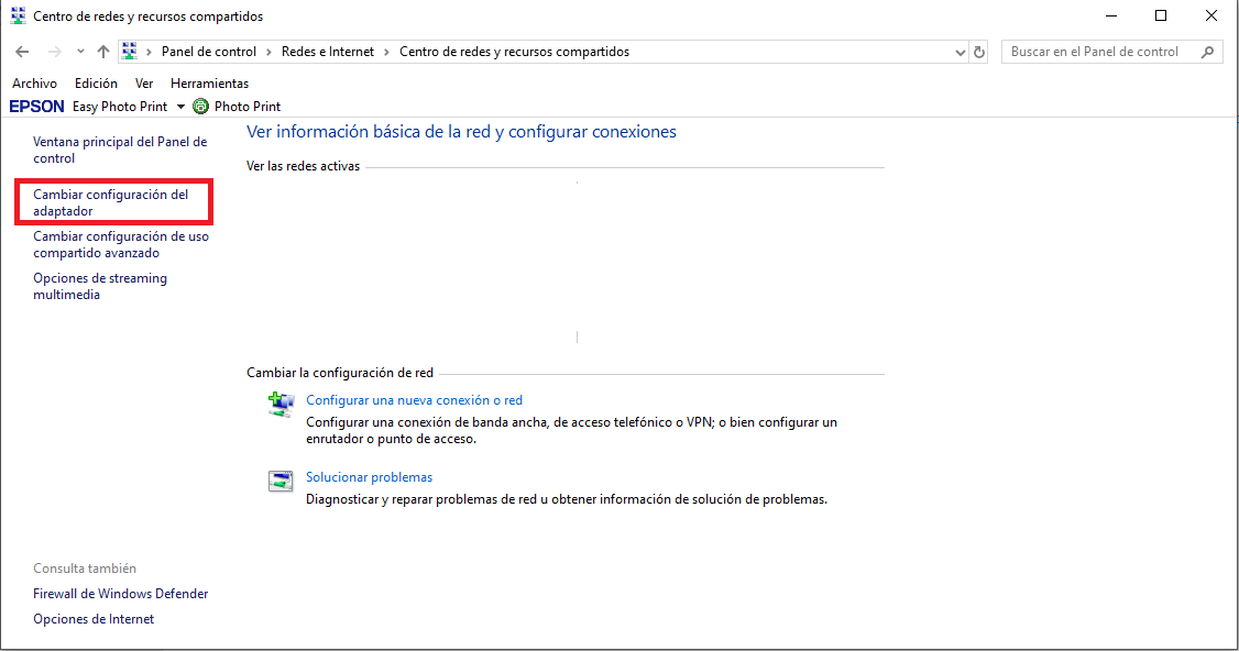 Primero debemos entrar al panel de control en la siguiente dirección Panel de Control\Redes e Internet\Centro de redes. Desde esta dirección seleccionamos la opción que se muestra