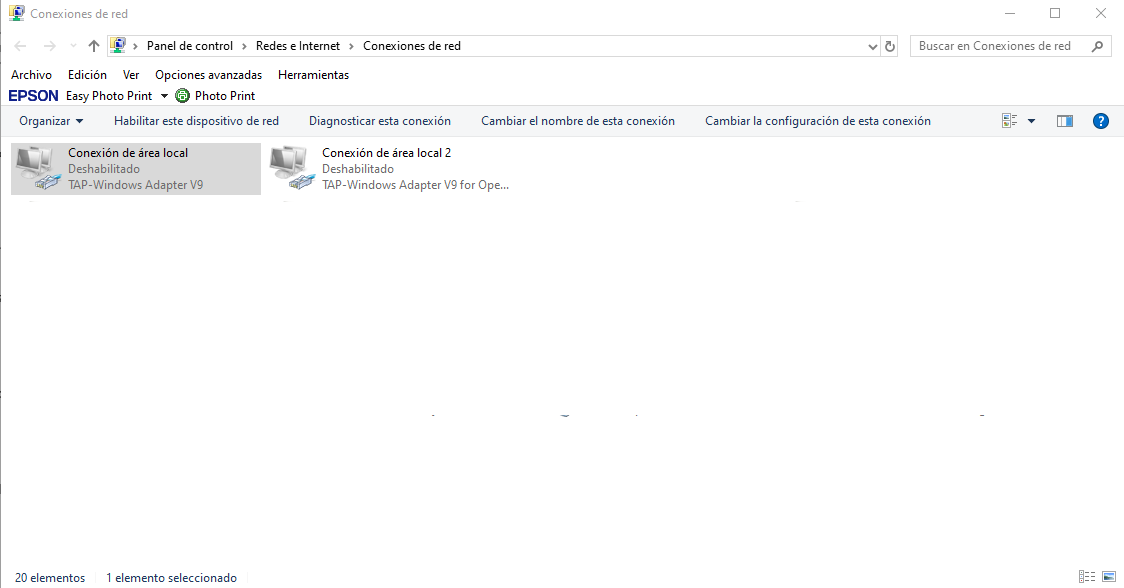 Seleccionamos la red asignada a nuestra Vpn, esta podra identificarla al contener el tipo "TAP-Windows".