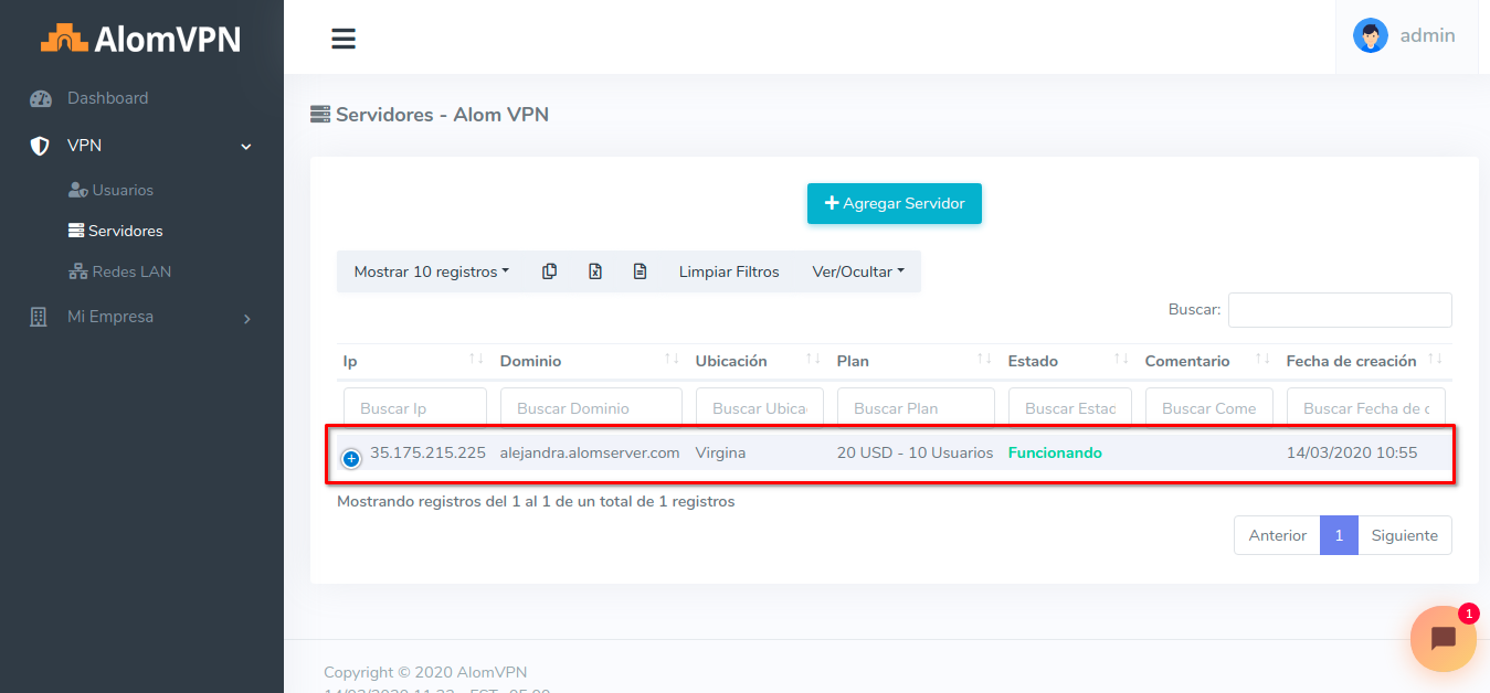 1 Llevar a cabo esto es muy sencillo. Acceda a su cuenta de Alom por medio del dominio que se le brindo en un principio y acceda al apartado de Servidores